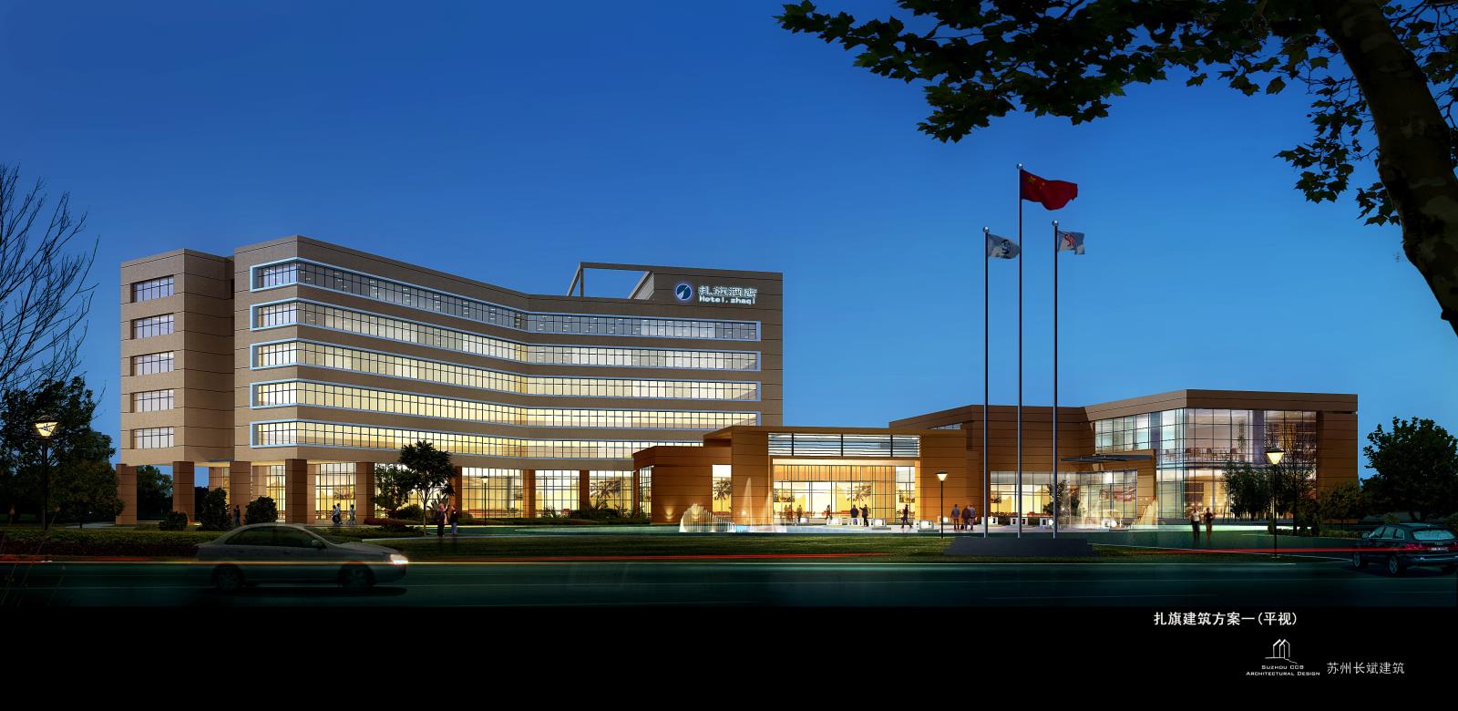 本案位于内蒙古扎赉特旗,建筑面积13032 m² ,拟建四星级涉外宾馆。功能配套有大堂接待区、会议餐饮区、康体区及客房区,满足现有区域经济发展配套接待需求。风格运用现代唯美的手法,力求以简洁的块面关系,顺势结合空间原有的结构构造形态。整体以米黄色系贯通,空间中通过工艺配饰及软装的点缀让环境氛围更雅致,愿到访的客人接受度更高…主材以砖替代石材是为提倡环保并节约投资造价。